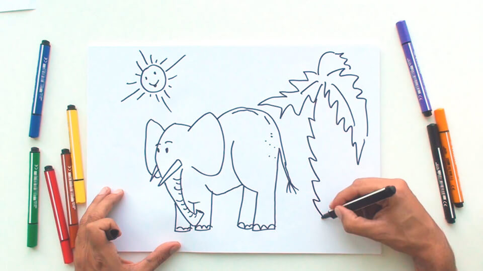 What is grey and big and every kid loves it? Watch this video and learn how to draw a simple elephant every kid will enjoy. The new color shade Elephant grey of STABILO Trio Scribbi is perfect for this. This triangular coloring felt-pen has a cushioned tip, so even strong writing pressure will not harm it and the ink is super washable.