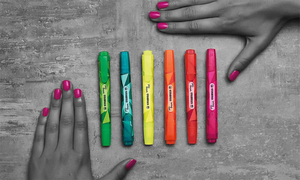 The new STABILO swing cool Colormatrix Edition is ideal for trend-oriented teens, students and anyone with a creative mind. These pocket-sized highlighters in 6 different trendy geo style patterns are available for a limited time only. They offer a practical clip, 2 line widths and water-based ink.