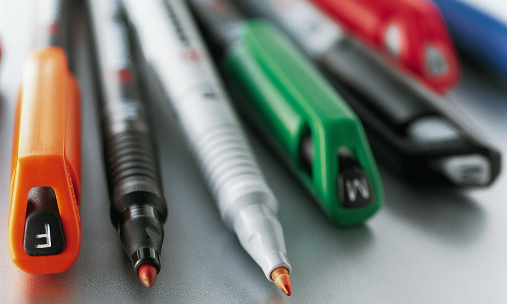 Make presentations at school and work easier with STABILO OHPen universal. This range of overhead projection pens is available in eight colors with either water-soluble or permanent ink, a non-slip grip zone and 3 line widths (S, F, M).