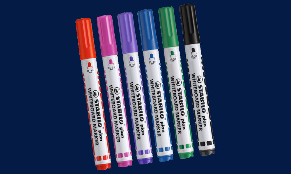 The STABILO plan is a whiteboard marker, available in 6 vibrant colors and two line widths (F and B). It is the perfect tool for students, companies, consultants, sales worker and all those who want to give effective presentations on whiteboards.